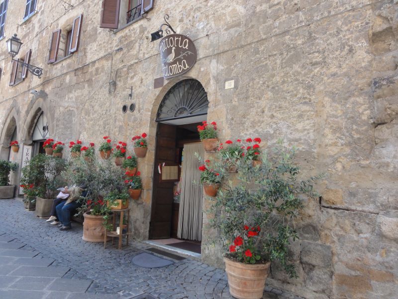 まず中心部のドゥオーモ広場まで行きました。とりあえず、すでに正午近くなっておりお腹もすいてきたので、ここでの大きな目的でもあるおいしいスパゲティを食べに行くことにしました。「アーモ・イタリア」や「ふたご行進曲」で紹介されているTrattoria La Palomba というレストランです。ここの「トリュフのウンブリケッリ」というパスタが看板メニューです。そのお店の前に行くと