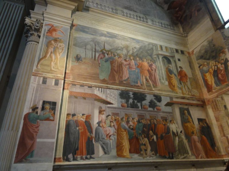 この教会の主たる建物は18世紀の火災で焼け、後に再建されたものですが、火災を免れた部分にマザッチョの有名なフレスコ画があります。