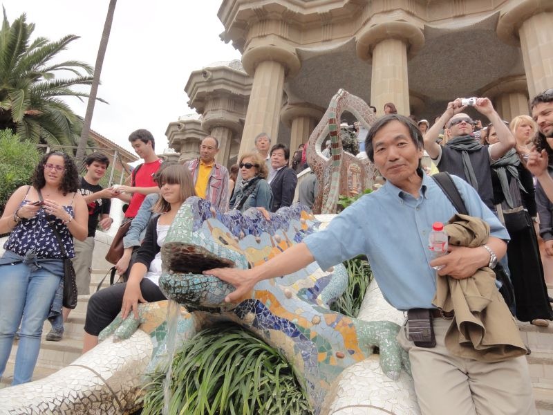 ど、ここはもっと人が多そうに見えました。観光客に混じって、幼稚園や小学校の遠足の子どもたちもたくさんいました。とにかくガウディのデザインした造形に一つでも多く触れたいと歩き回りました。あのトカゲ君にも触ることができました。