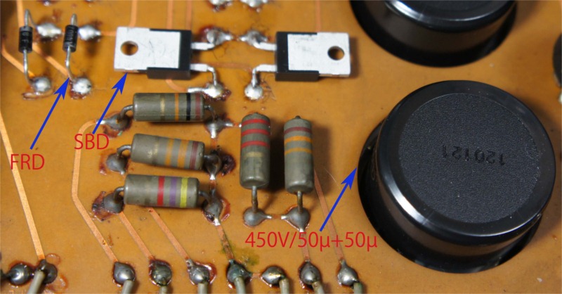 1.電源部のダイオードをショットキーバリアもしくはファーストリカバリに取替