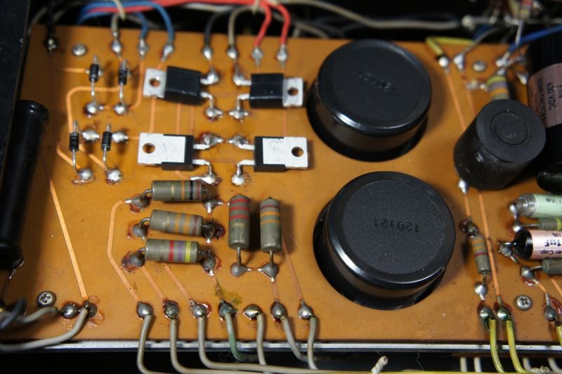 プリント基板と下のアルミ板の間隔は1㎝もないくらいなので部品のリード部分が長くなり過ぎないように適当にカットしてはんだ付けしていきます。はんだ付けの後、下のアルミ板に接触していないかテスターで点検すれば安心できます。はんだごてがいいと最短時間ではんだ付けができ、プリント基板に負担を掛けないで作業ができます。