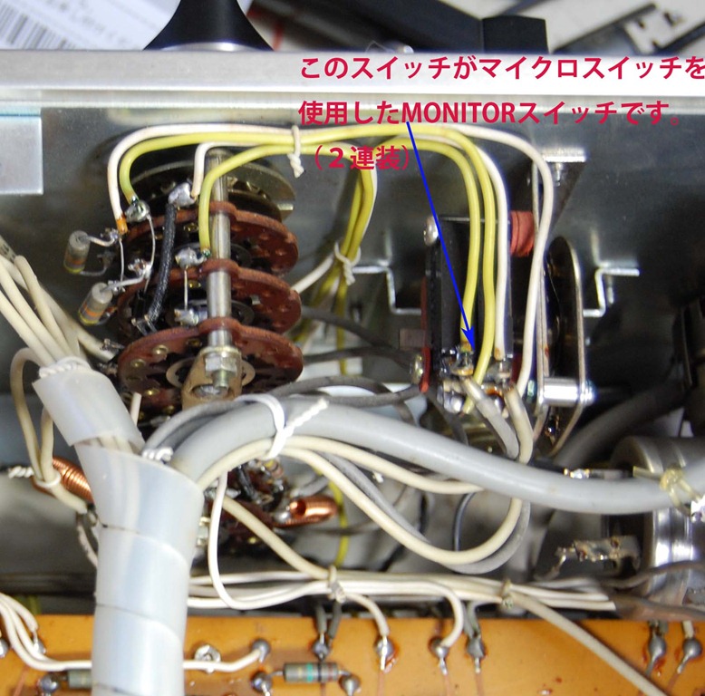 りしてきたのでSW類を触っていくと、ついにMONITORスイッチを触った時に左側の音が切れました。実はMONITORスイッチはマイクロスイッチというものが左右1個ずつ使われていて接点がケースに覆われて外から見えないスイッチなので接点の洗浄をしていなかったのです。いろいろネットで調べると分解しなくても洗浄できることがわかって、その記事を参考にして接点の洗浄を行いました。