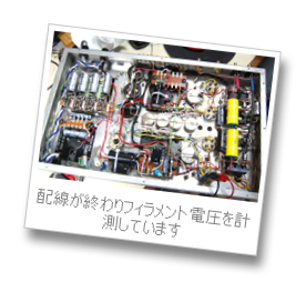なんとか配線が終わりに近づきました。各部の電圧をチェックしていくと未配線、はんだ付け忘れなどたくさん見つかります。それを直して各部の調整に入