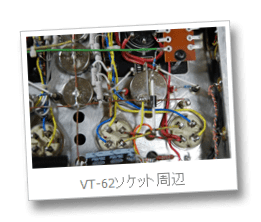 ります。まずフィラメント電圧を計測するためにVT-62をソケットに挿入しテスターで電圧を計測すると8.3Vも出ています。7.5Vにするためにフィラメント電源整流部に入っている0.2Ωを0.8Ω程度に増やさないといけませんがストックを見ると0.8Ωの抵抗がありません。今日のところはここまでにします。