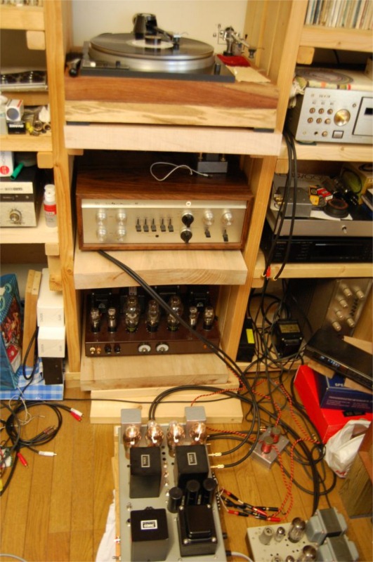 特に問題となる部分はなさそうなので、肝心の音はどうなのかと普段聞いているシステムに入れて音出しをしてみました。一言でいえばストレスなく軽々と出てくる中高域、一方でフォルテでは激しい表現も難なくこなすかなりの優れ物と見ました。あのおとなしすぎるきらいもあったFW-20Sがこんなに鳴るんですかという感じがしました。FW-20Sを他の出力トランスに代えたらどんなに鳴るんだろうかという興味も湧きます。後何時間も鳴らしているとどうしても電源トランスが熱を持ってくるのが少し気になります。これは小さなボディに大きな仕事をさせているのですから無理もないことでしょう。さて音はかなり気に入りましたが、またこれはこれで今までのメインのメインアンプ(Asano 300Bシングルアンプ改:初段6ZDH3A、出力トランスOne Electron UBT-3)と甲乙つけがたく、どこに置いておこうかという悩みが出てきました。
