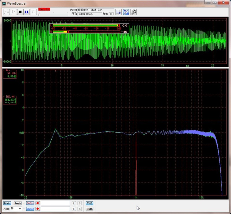 これは商社名で実際の製造元は管壁の型番表示の特徴からSylvaniaかGEではないかと思います。これで調整を再開できます。まず手軽に測定できる方法としてはパソコンとWavegen、Wavespectraというよく知られたソフトを使ってする方法ですが私が持っているサウンドユニットがうまく設定できずに変な接続しかできませんでしたがなんとか周波数