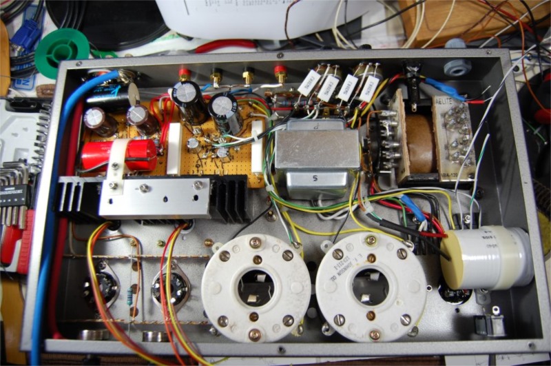 すぐにでも配線に取り掛かりたかったのですが、いろいろ他の用事があり最近になって配線作業に入りました。シャーシが小さい割に収めなければならないものが多く結構悩みましたが、現在6~7割がた終わりました。あまり上手な配線はできないのですが、確実な配線を心掛けています。