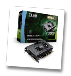 次にグラフィックカードを見に行きました。最近はGeForceシリーズがよく売れるのか大半はそのシリーズでした。4ディスプレイで使いたいとのことでいろいろ考えましたが、GTX650のカードを2枚挿しで使うことに決め、ELSA GeForce® GTX 650 Ver.2 S.A.Cを2個購入しました。このカードは静音ファン装備なのと補助電源不用というのがポイントです。