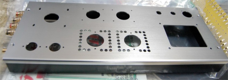 第1に考えたのはシャーシーをどうするのかとトランス類は入手可能なのかということです。シャーシーについてはこの際最初で最後の業者に依頼して穴あけしてもらうことにしました。色々業者、その製品等を比較した結果、価格とサイズの面でTAKACHIのSRDSL-7HSにして穴加工もTAKACHIに依頼することにしました 。出来上がったシャーシーは文句のない加工精度でした。が1ヵ所私の指示ミスで出力トランスの取り付け穴の位置が間違っていました。この点だけが残念でした。
