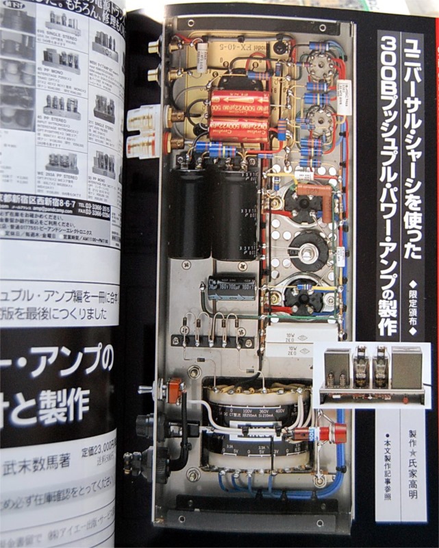 大きなアンプの新規製作はそろそろ終わりにしたいと思って、最後に何を作ろうかと思案しているときに、前から気になっていたアンプを思い出しました。それは氏家さんが2003年6月号の『ラジオ技術』誌に発表されたフローティングOPT方式の300B A級プッシュプルアンプです。