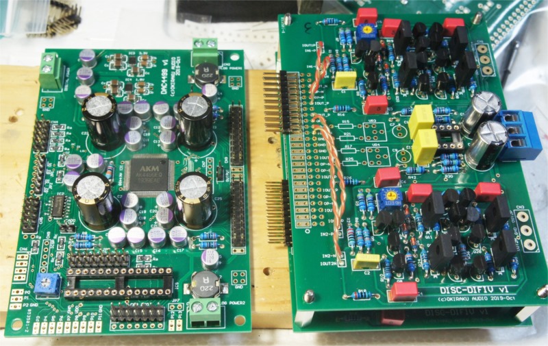 ゆっくり慎重に半田付けしながらやっと1枚目のDAC基板がなんとか完成しました。細かいところは後にして、もう1枚の作業が残っています。・・・・・