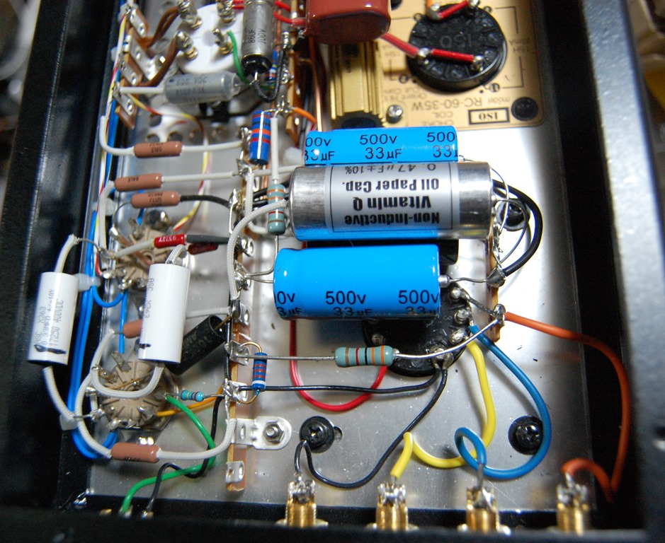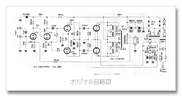 前回までこのアンプは電源ON・OFF時に結構大きなポップノイズが出るので、その問題を解消することに試行錯誤を繰り返していましたが、芳しい結果にはなりませんでした。とうとう万策尽きたかと諦めかけていたのですが、もう一度原点に帰って回路図を見て考えてみると、この回路は位相反転段とそれを受ける電圧増幅段の回路が他では見たこともない特殊な回路だということに思い当たりました。そこで思い切ってオリジナル回路から離れて一般的なPK分割位相反転回路+電圧増幅回路に変更してみることにしました。その結果なんと電源ON・OFF時のポップノイズはまったくしなくなり、問題点は解消しました。一番不安だった回路を変更したことによる音質や特性の変化はないようで一安心です。これでこのアンプの製作は完了とします。![]()