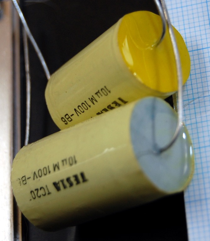 DACの出力カップリングコンデンサーを何に交換するのか検討していますが、結論が見えてきました。まず、チェコのパーツ店に注文していたTESLAのフィルムコンデンサーが到着したので検品してみましたが、一言で言えばひどいです。一見して胴の長さが違うのがわかります。容量を測ってみると長い方が11uF、短い方が9uFと胴の長さに比例していました。これが当たり前としたらチェコのパーツ事情はお寒い状態です。一方良い事もありました。海神無線さんにダメもとでメールしてみたところ、ASCのフィルムコンデンサーが店頭に別の在庫があったので、注文可能ですとの返事が来てすぐ注文しました。あとWEBをあれこれ見ていて、カップリングにスチコンをパラったら音が良くなるという記事をみつけ、欲を出してやってみようとソ連時代のスチコンをヤフオクで落札しました。